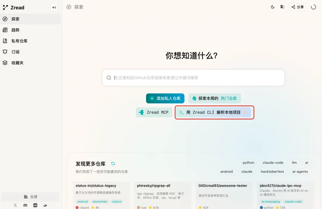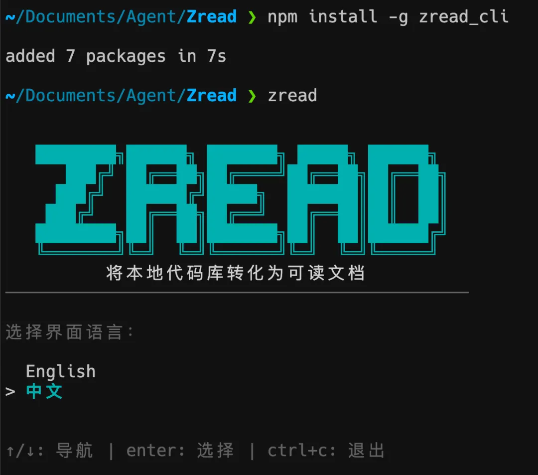 最近登录 zread.ai,发现它们推出了一个挺实用的 CLI 工具,能帮你快速搞懂任何一个代码仓库的结构和架构。