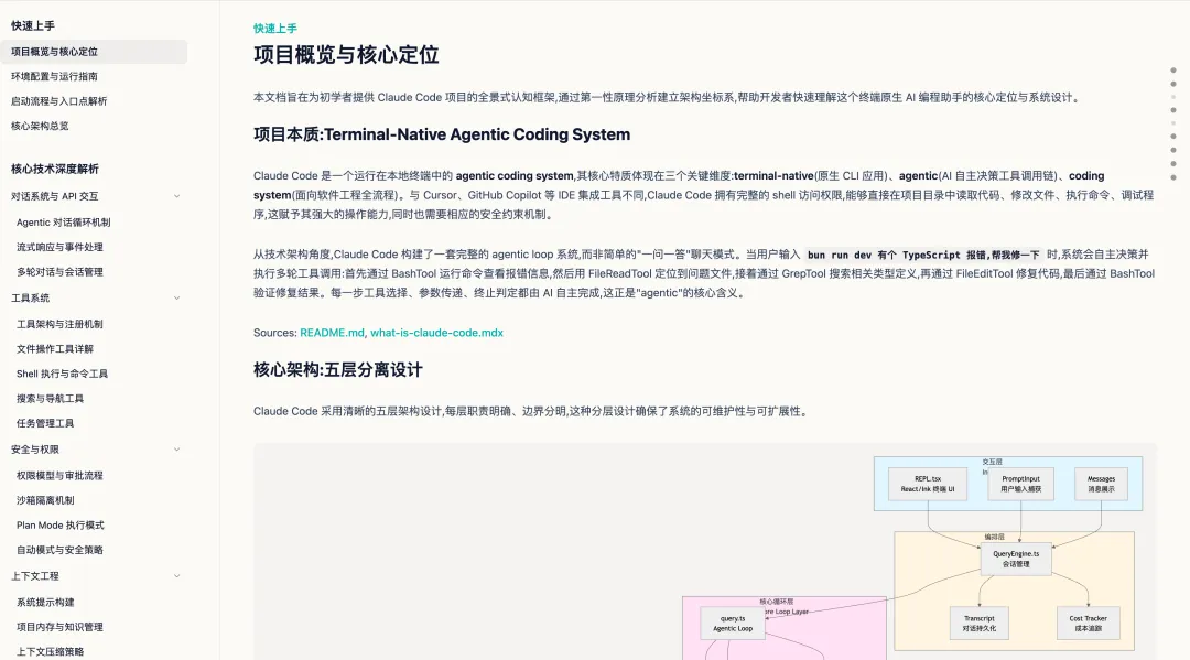 生成完之后,可以使用 zread browse 查看刚刚生成的文档。
