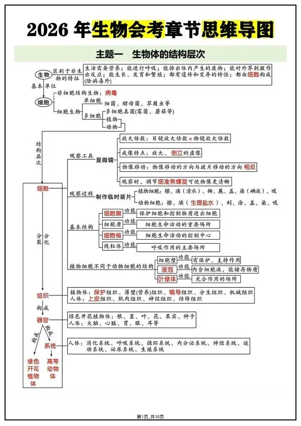 今日分享2026春生物会考章节思维导图(完整电子版可打印)!所有资料均为高清电子版,排版规整适配打印,不用费心整理,直接打印就能用。精准击破学习难点,帮孩子夯实基础、吃透考点,稳步提升学习效率!