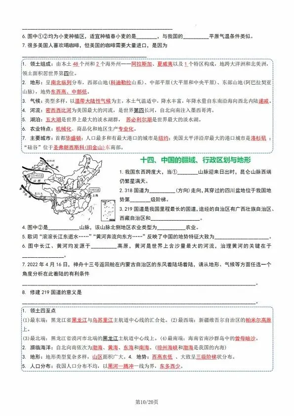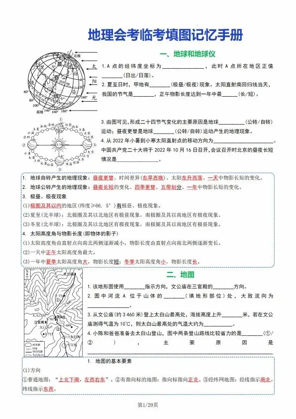 地理会考临考填图记忆手册(完整电子版可打印)