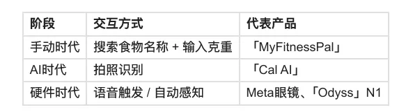 继续下去,交互方式正在从主动记录走向被动感知。手机 App 在这条链路中的位置,从“入口”变成了“后台”。