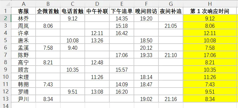 但实际场景里,时间可能躲在“企微首触、电话首触”等N列里,还可能有空单元格——这就需要公式当“智能侦探”,精准定位+筛选。