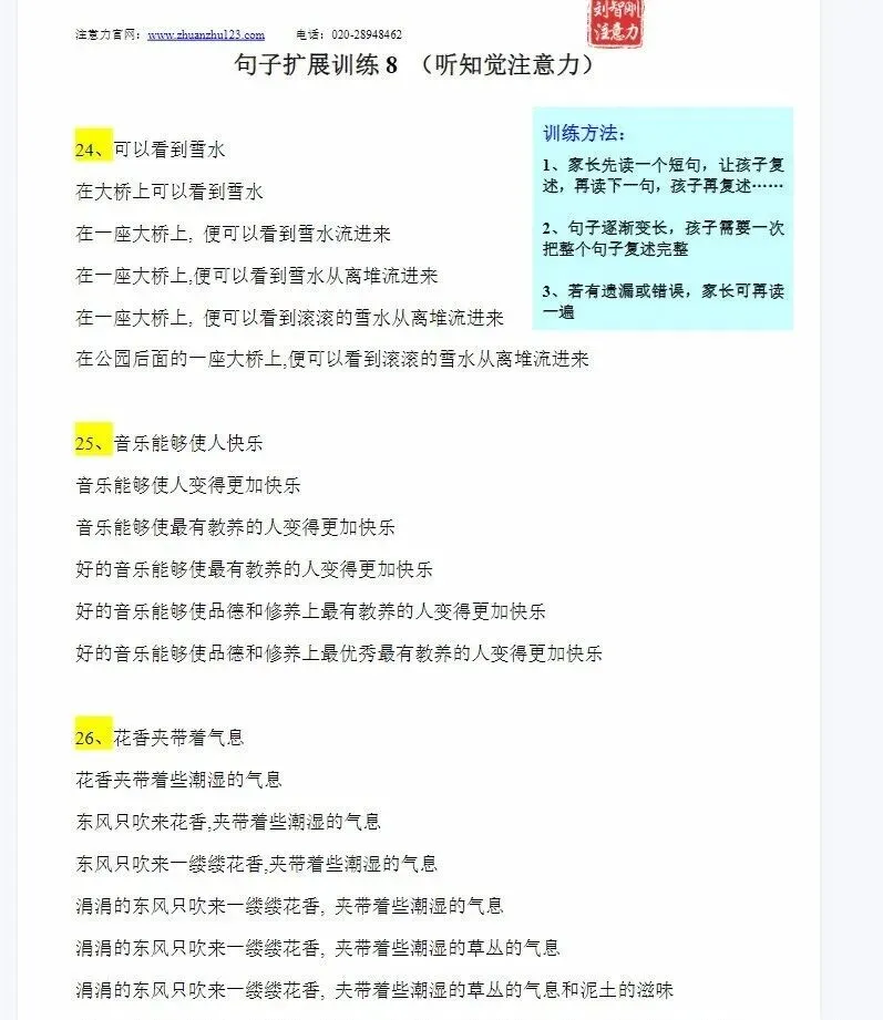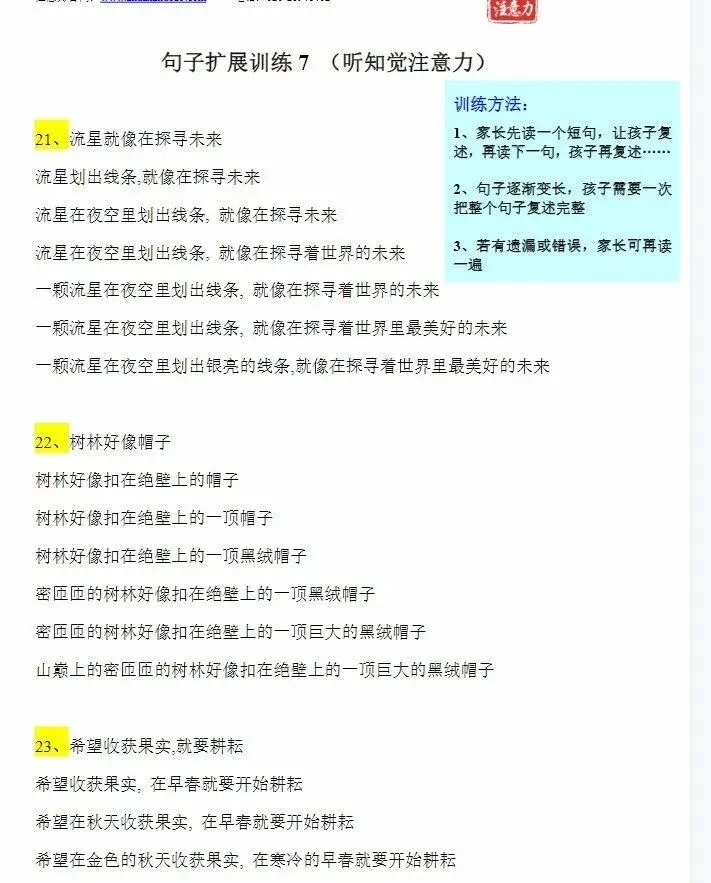 免费资源:句子扩展训练 (听知觉注意力)电子版