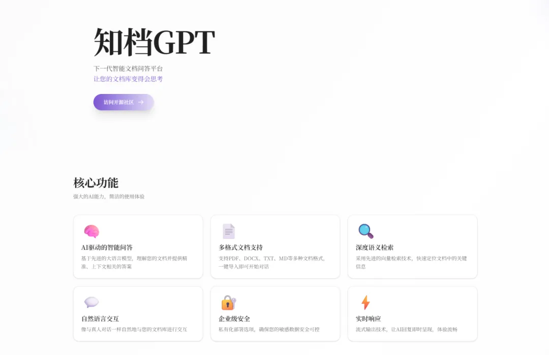 知档GPT应运而生!作为完全开源的企业级私有化平台,它打通文档解析、向量检索与大模型编排,实现”导入→索引→对话/智能体→扩展集成“全流程闭环,让多源资料秒变可检索、可追溯、可行动的知识库。