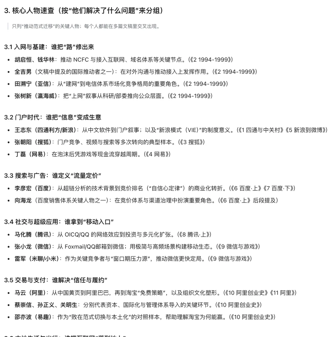 另外的一个类似的场景是,我把半拿铁里中国互联网故事的稿件都丢给他,让他帮我整理一个导读文章,也是几分钟就写好脚本,搞定了。