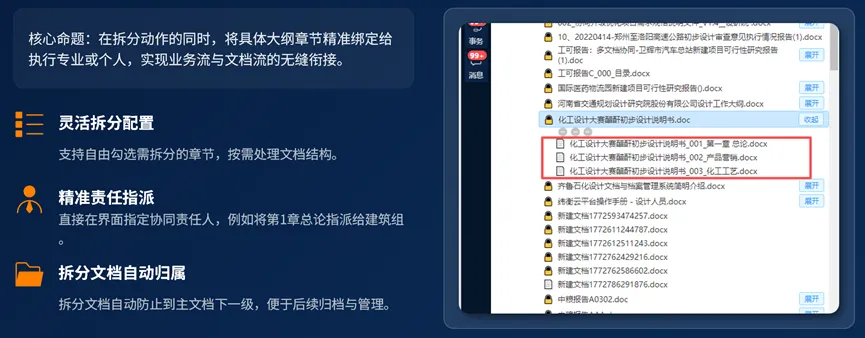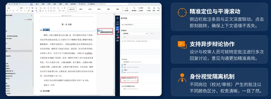 WPS文档协同助手深度贴合设计工作全生命周期需求,覆盖从文档拆分、合并、校审、交付的每一个环节,让文档协作的每一步都高效有序。针对文档协作的核心痛点,打造多重核心能力,精准击破效率瓶颈:
