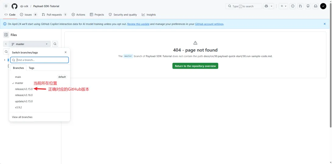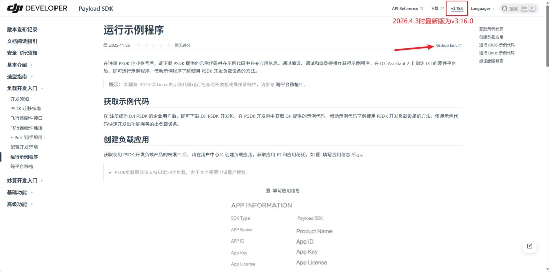 众所周知无论是教程还是版本等文档有更新后旧版本的文档会关闭或者提醒移至最新文档查看,但DJI PSDK为开发者回溯特定版本会保留文档却又不提醒,导致开发者糊涂