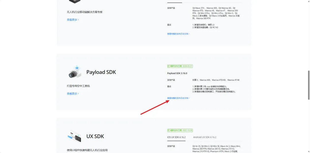 1. 点击DJI Developer 进入界面后找到想查看的对应SDK点击该处