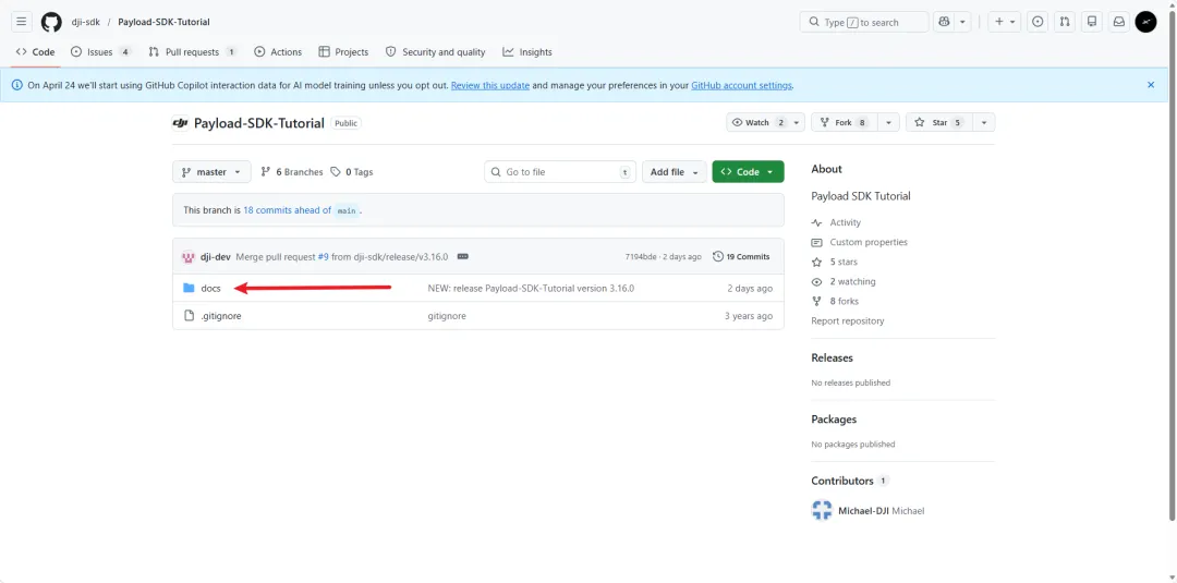 2. 在GitHub上搜索Payload-SDK-Tutorial,为官方的教程文档而Payload-SDK是官方的源码文档,要区分开