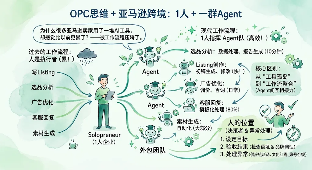OPC思维 + 亚马逊跨境:1人 + 一群Agent,真正可落地怎么做