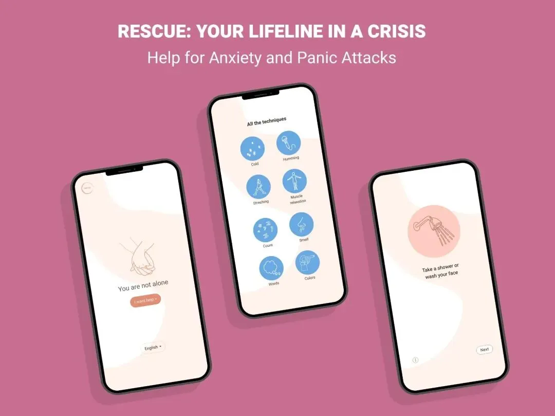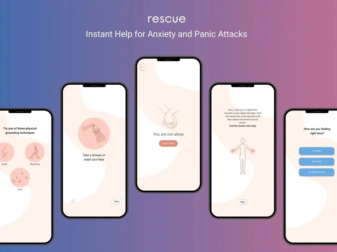 这款应用通过结构化逻辑引导用户,并根据实时状态调整互动问题。从打开应用的那一刻起,用户就会被引导进行基础评估,然后系统一步步帮助降低心率、恢复控制感,并提供多种个性化解决方案。