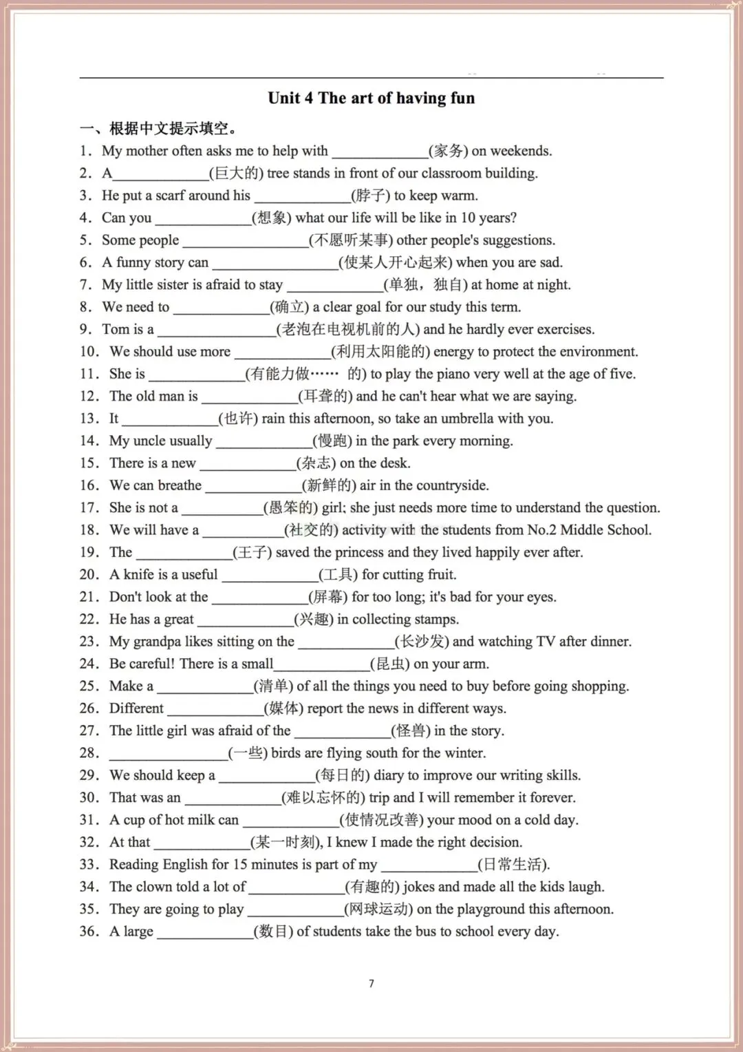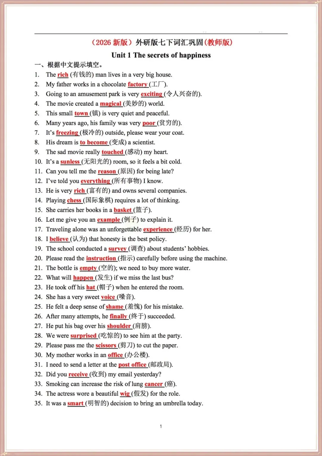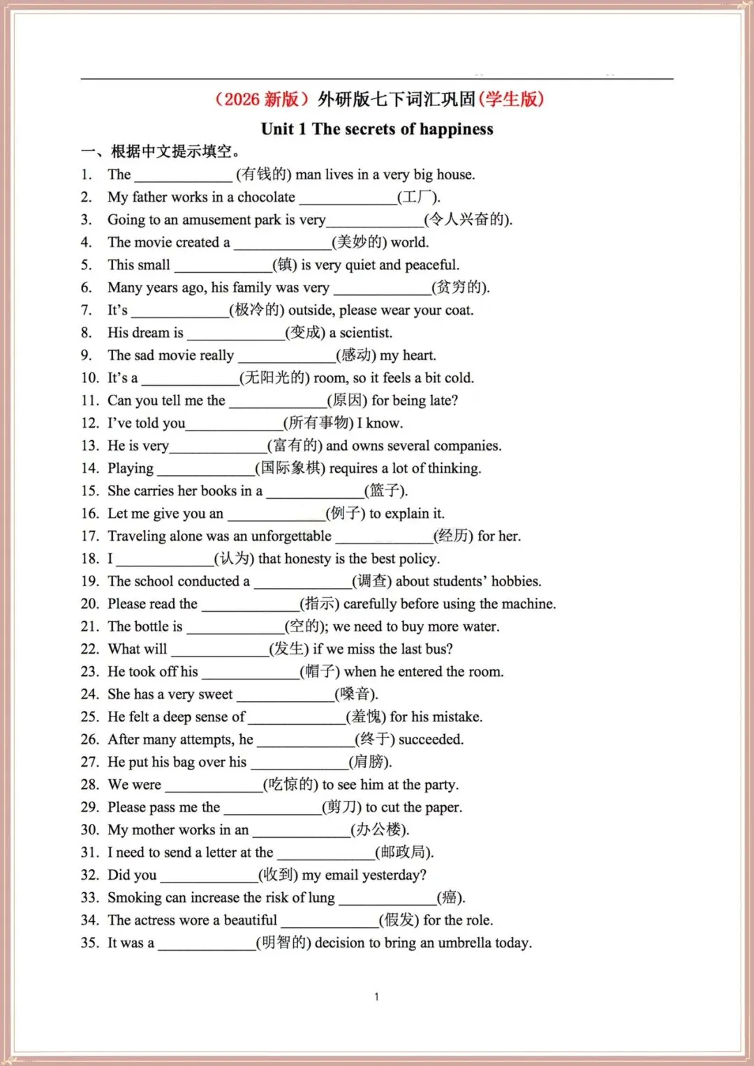 2026春新(外研版)七年级下册(英语)词汇巩固专项训练(含答案),可打印!