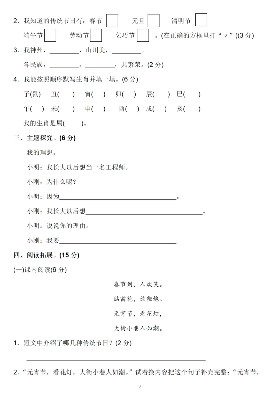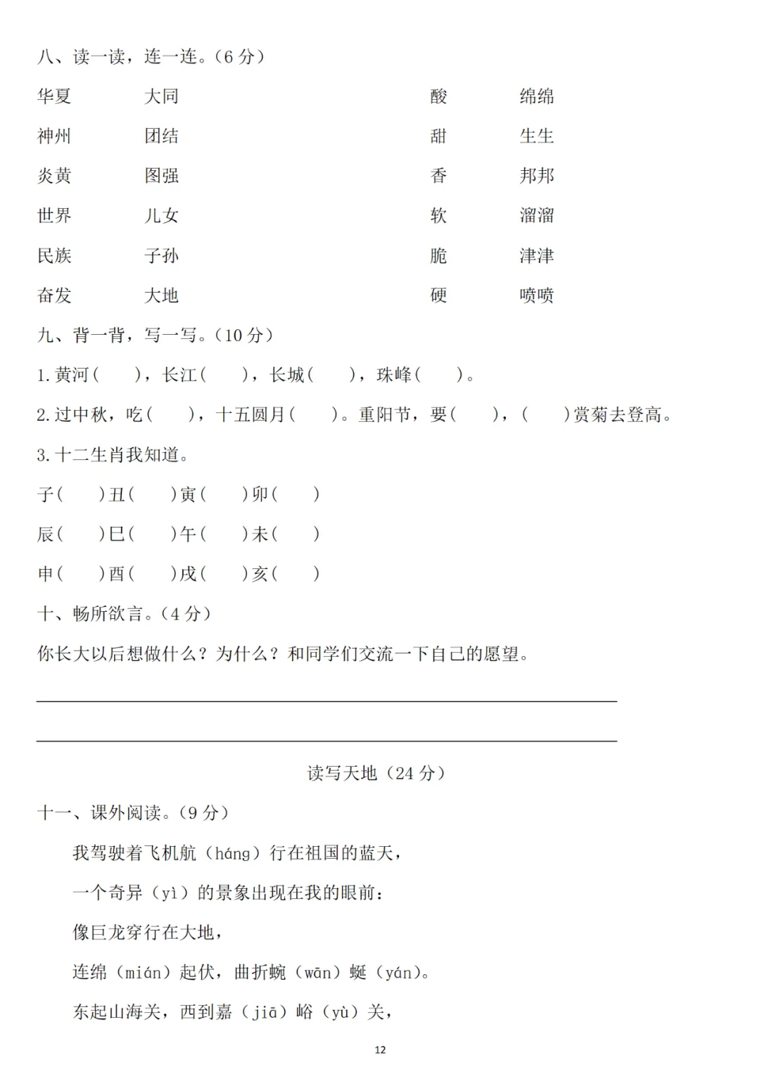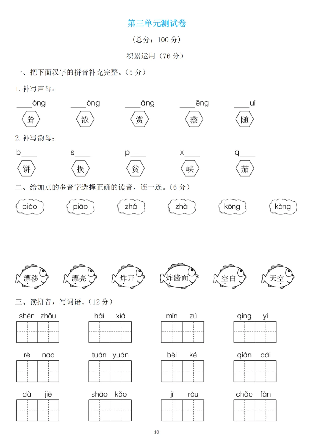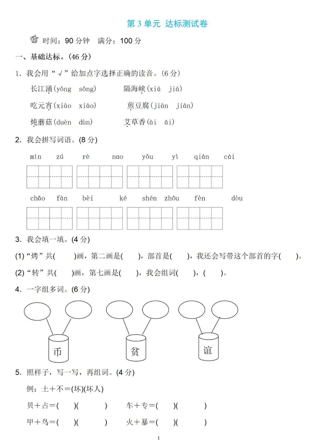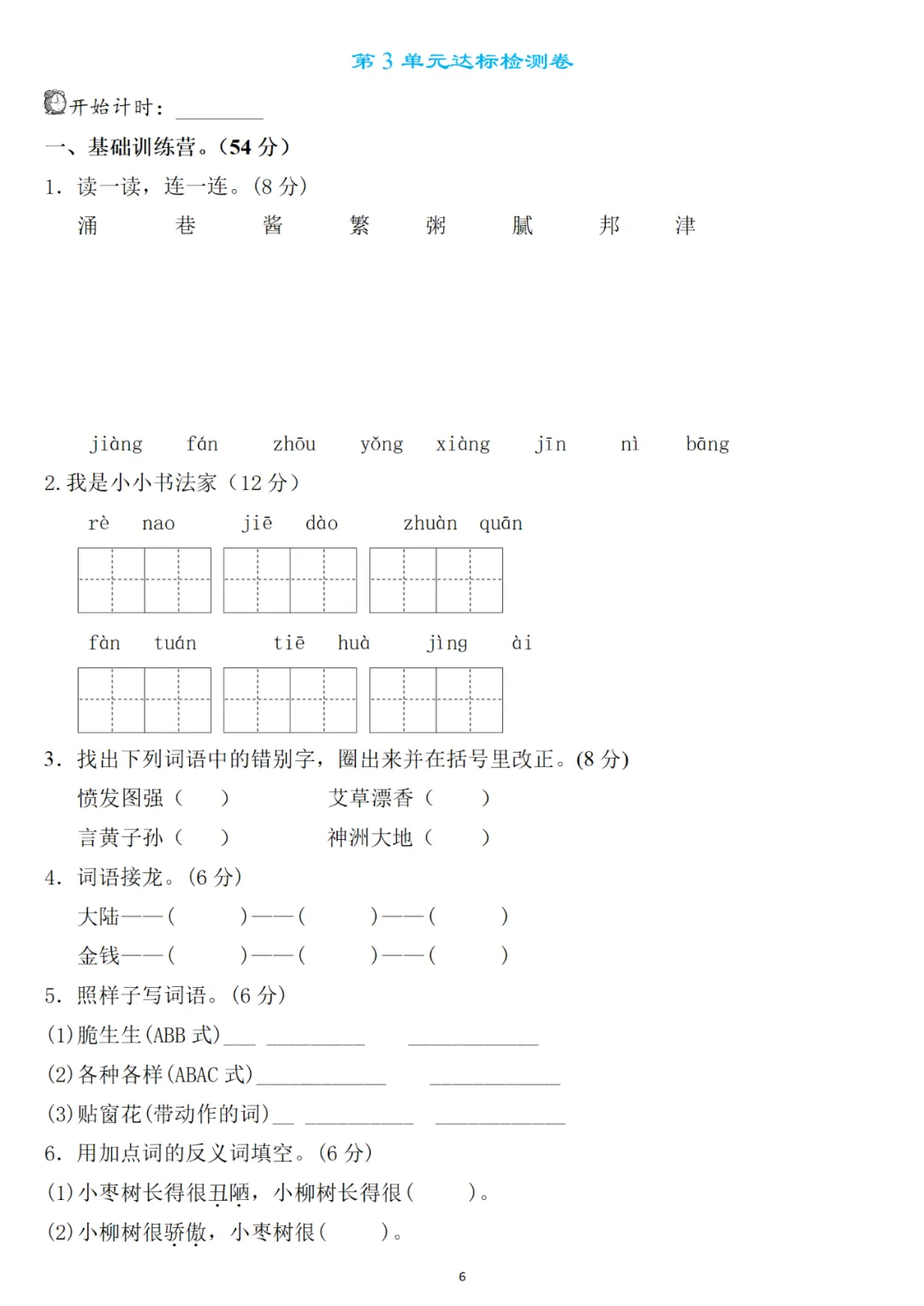 二年级下册第三单元检测卷6套,免费下载