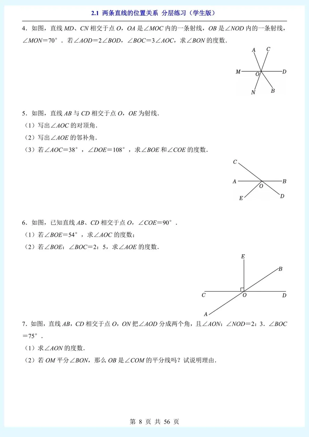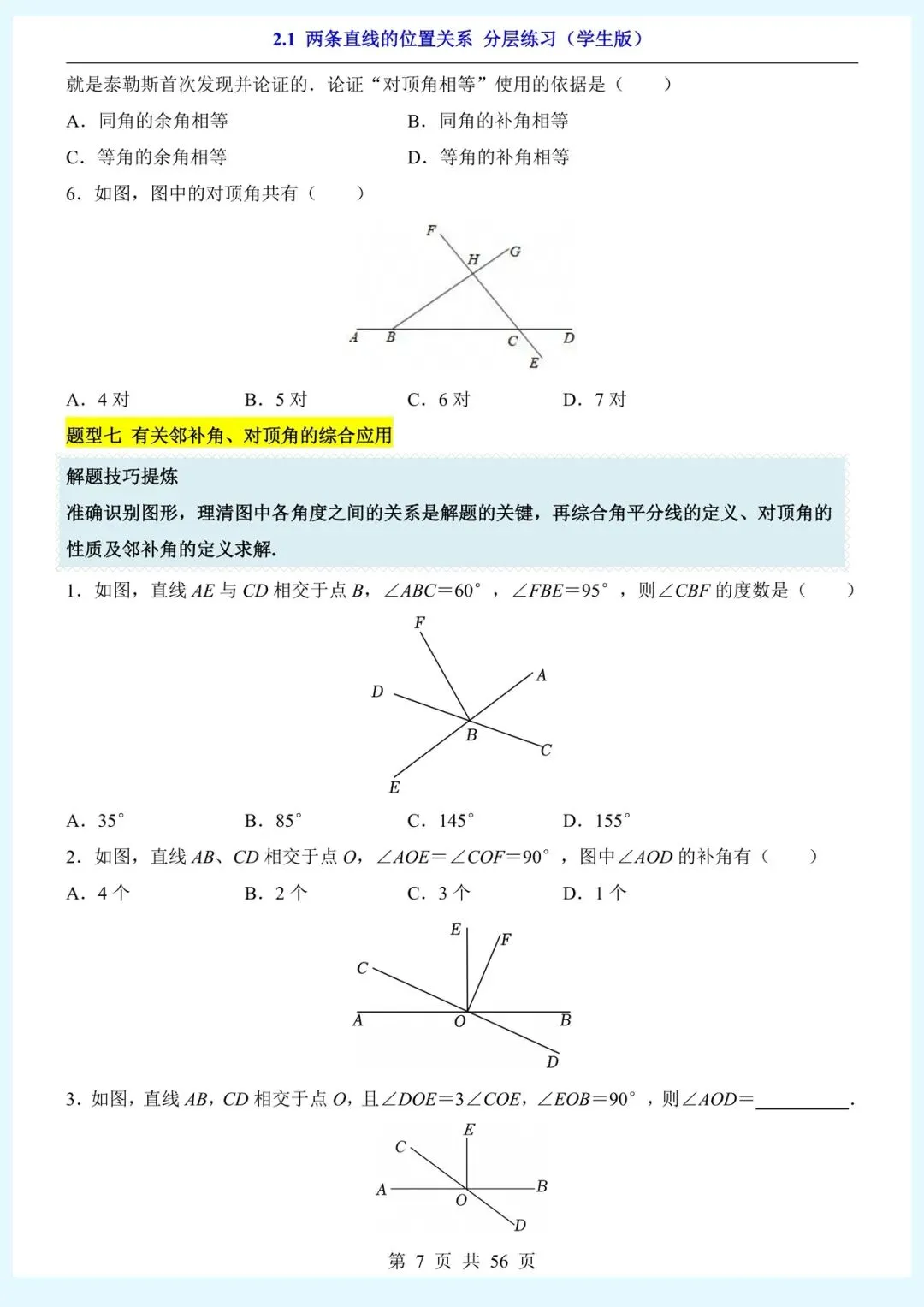 2026春(北师大版)七年级下册(数学)同步学与练《一课一练+单元测试卷》多套含答案讲解,可打印!