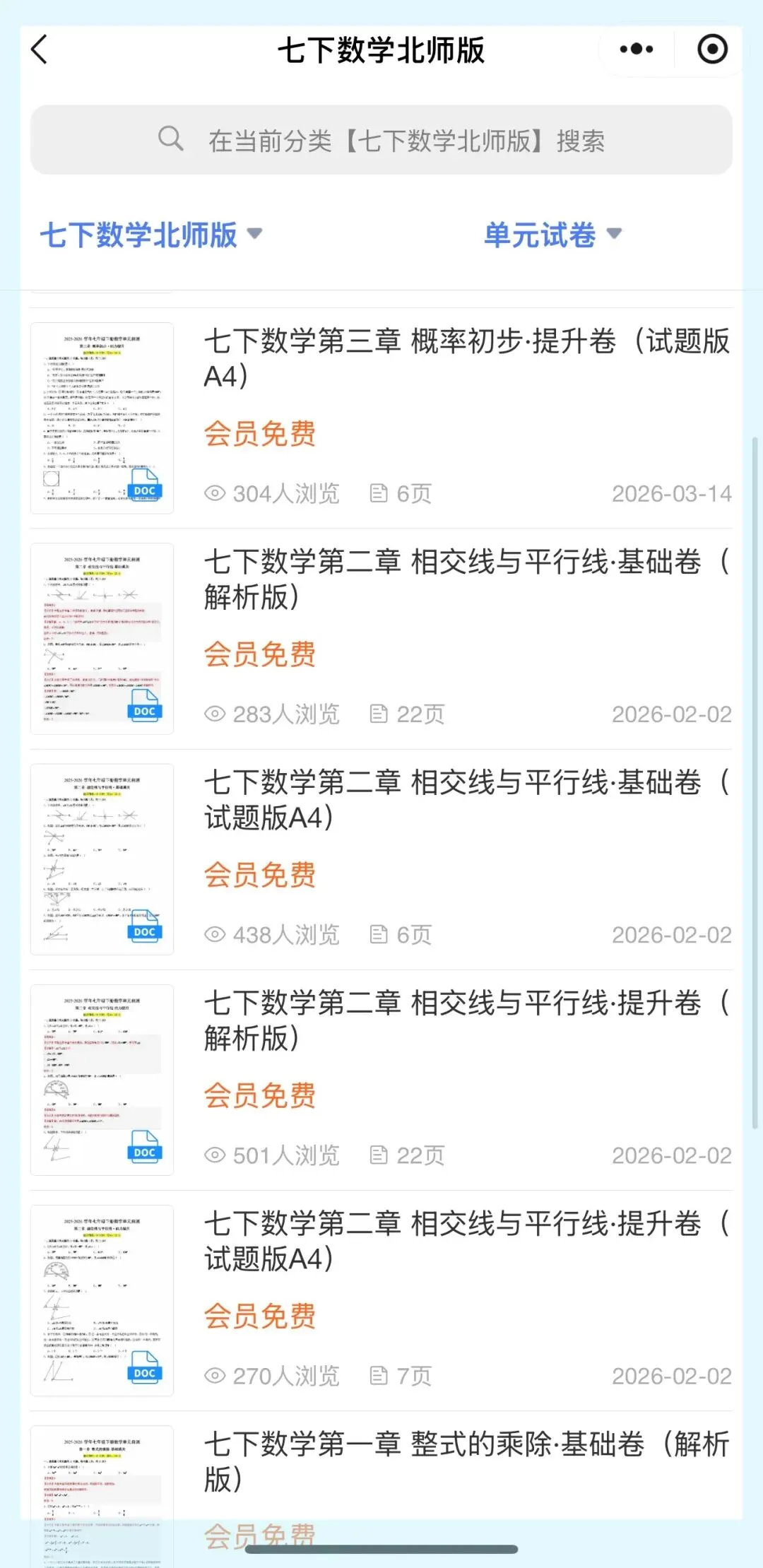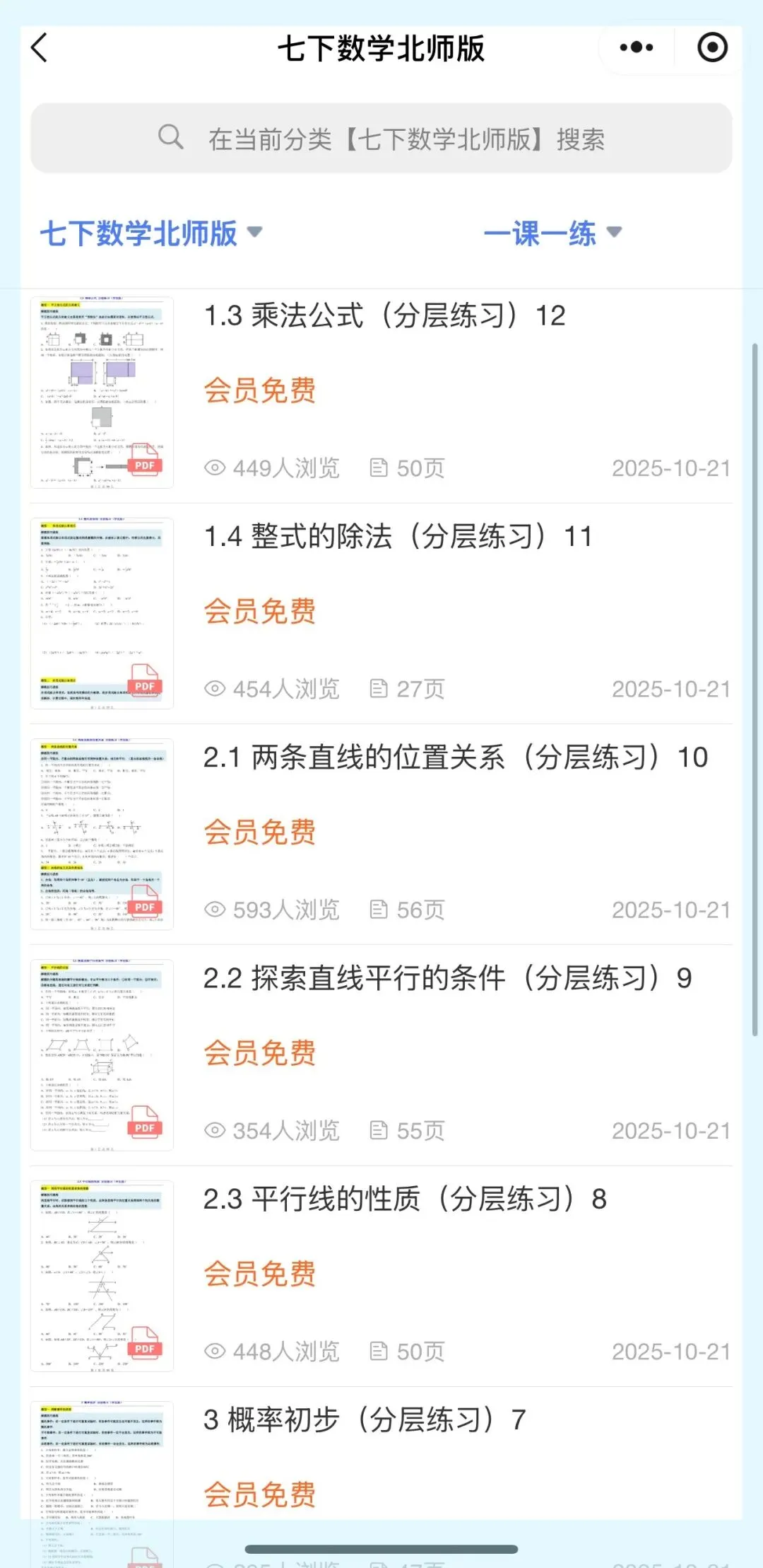 2026春(北师大版)七年级下册数学同步学与练《一课一练+单元测试卷》含答案讲解,电子版可打印!