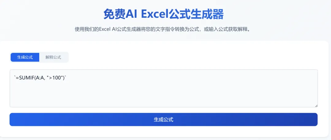 它的核心理念极其简单:你不需要记住任何函数语法,只需要用日常语言描述“我想要什么”,AI就能帮你写出正确的公式。