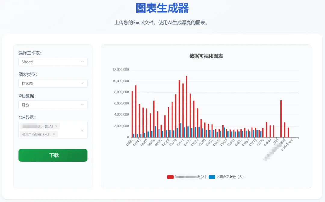 上传Excel表格,AI自动生成美观的折线图、柱状图、饼图,快速展示数据分析结果。