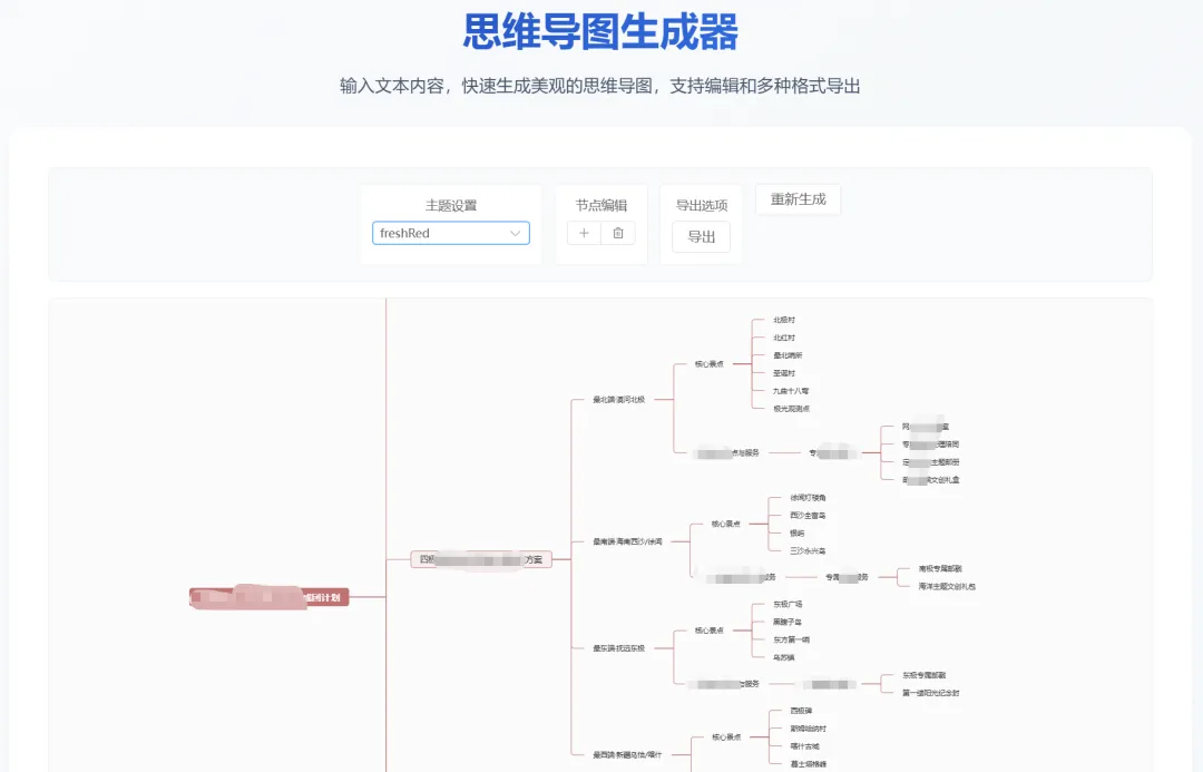 输入一段文本,AI自动分析并生成结构清晰的思维导图。生成的导图还可以在线编辑,有多种样式可选。