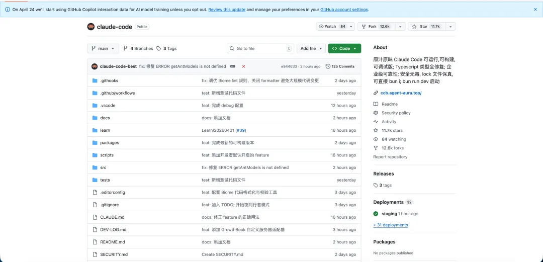 Claude Code CLI 工具的源码反编译/逆向还原项目https://github.com/claude-code-best/claude-code