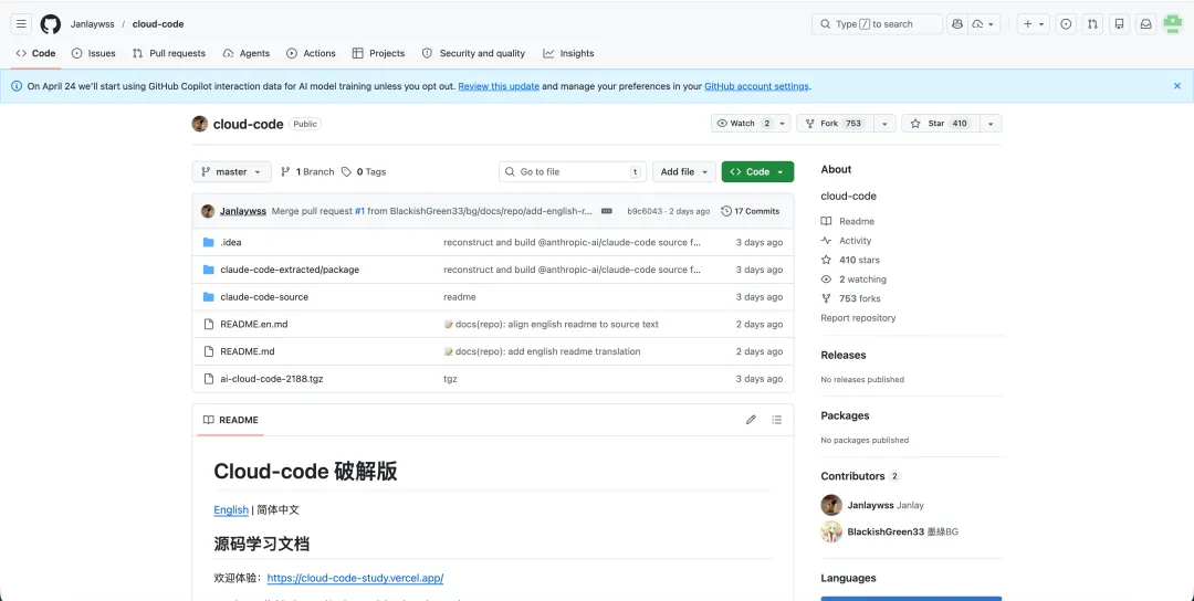 Cloud-code 破解版:https://github.com/Janlaywss/cloud-code