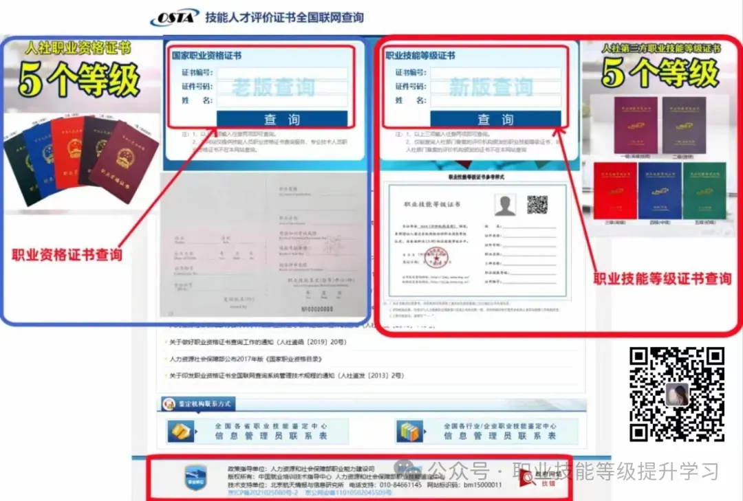 ① 技能人才评价证书全国联网查询系统(网址:http://jndj.osta.org.cn/, http://zscx.osta.org.cn/)