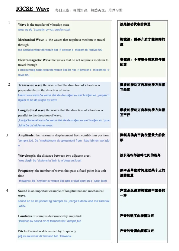 备战 IGCSE 物理的同学看过来!今天为大家整理了一份IGCSE考前必背物理概念合集!这份双语 + 音标 + 考点浓缩背诵资料,直接帮你把核心概念、公式原理、英文表述一次性背牢,考前快速提分超好用~
