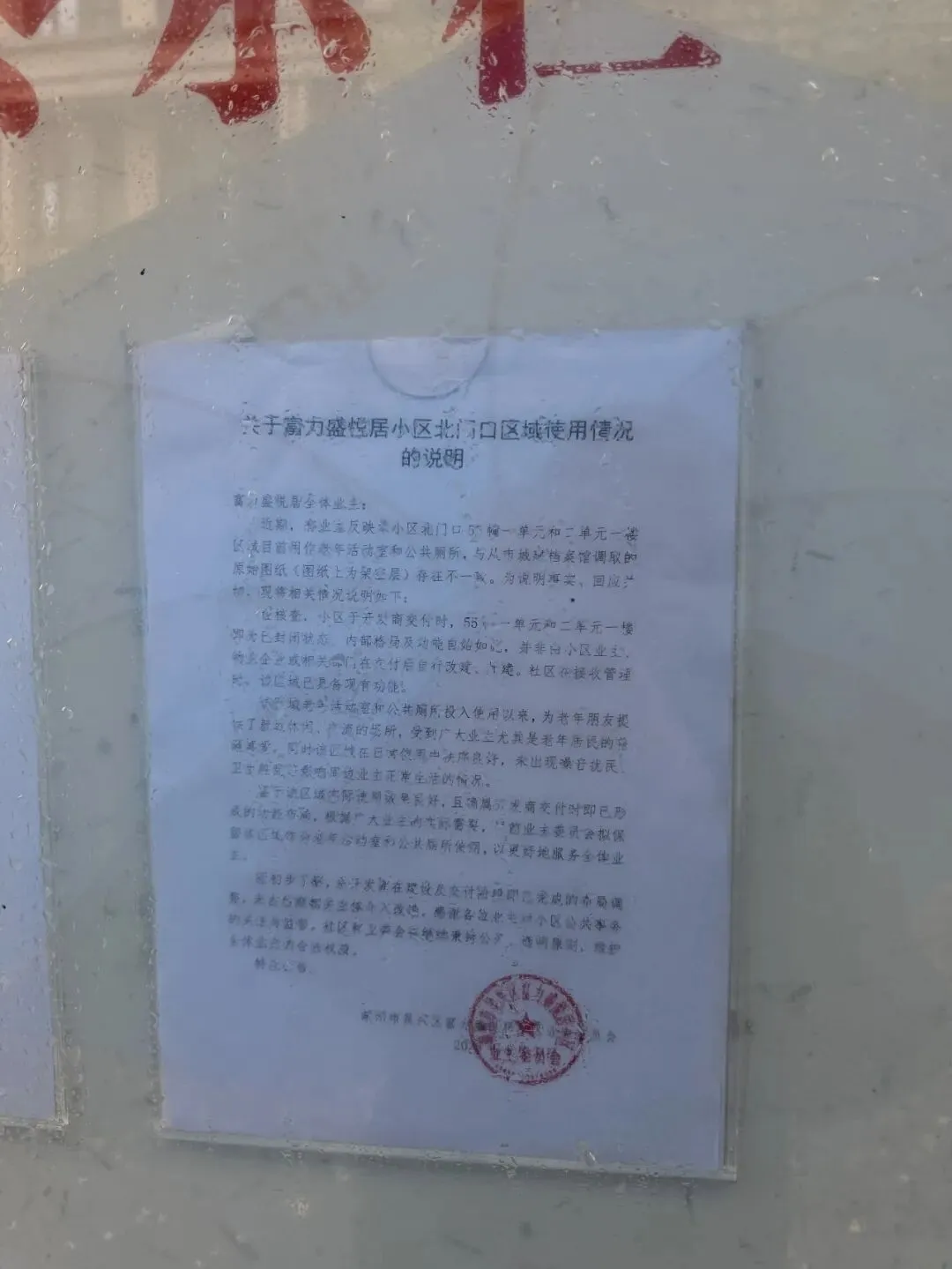 关于富力盛悦居小区北门口区域使用情况的说明