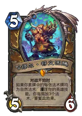 ▪ 改动后:对战开始时:如果你套牌中的每张法术牌均为自然法术,灌注你的英雄技能。你每施放3个法术,重复此效果。