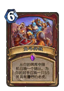 开发团队注释:对于角斗开战的调整,与其说是为了削弱其原始强度,不如说是针对这种特定的打法模式。虽然它目前还不是环境中主要的超模卡牌,但我们希望主动遏制这种游戏风格,避免它在过快发育为巨大威胁时,给对手带来令人沮丧的体验。