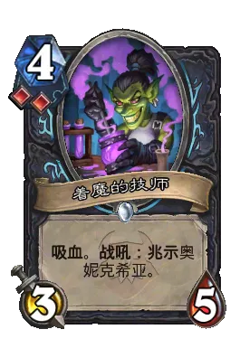 ▪ 改动前:在你的回合开始时,弃掉一张法术牌,以使本随从对你的所有随从各使用3张鲜血宝石。