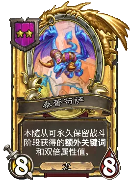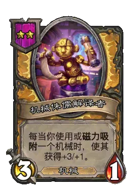 ▪ 改动前:改动前:3/2。在你的回合结束时,你每有一个金色友方随从,便获得+3/+2。