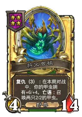 ▪ 改动前:4/4。亡语:在本局对战中,你的甲虫拥有+4/+4。召唤一只2/2的甲虫。