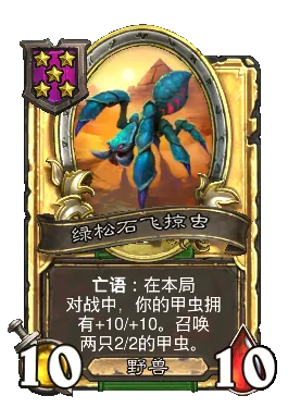 ▪ 改动后:5/5。亡语:在本局对战中,你的甲虫拥有+5/+5。召唤一只2/2的甲虫。