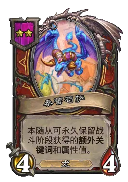 ▪ 改动后:[等级4] 3/5。每当一条友方的龙攻击时,使你的龙获得+1/+2。