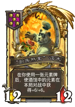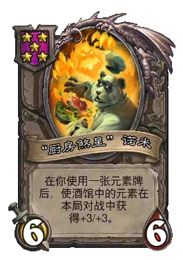 ▪ 改动后:6/6。在你使用一张元素牌后,使酒馆中的元素在本局对战中获得+3/+3。