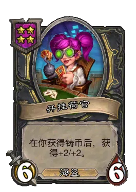 ▪ 改动后:[等级4] 6/6。在你获得铸币后,获得+2/+2。