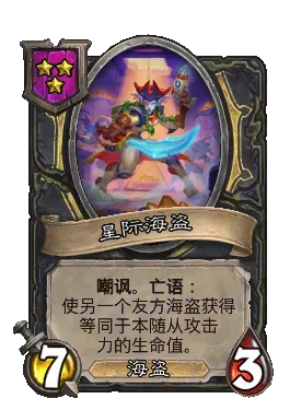 ▪ 改动后:[等级3] 7/3。嘲讽。亡语:使另一个友方海盗获得等同于本随从攻击力的生命值。