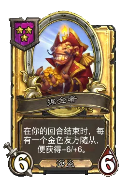 ▪ 改动后:3/3。在你的回合结束时,你每有一个金色友方随从,便获得+3/+3。