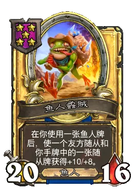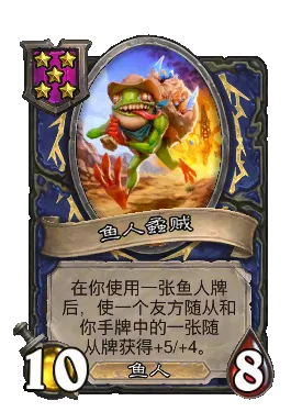 ▪ 改动后:10/8。在你使用一张鱼人牌后,使一个友方随从和你手牌中的一张随从牌获得+5/+4。