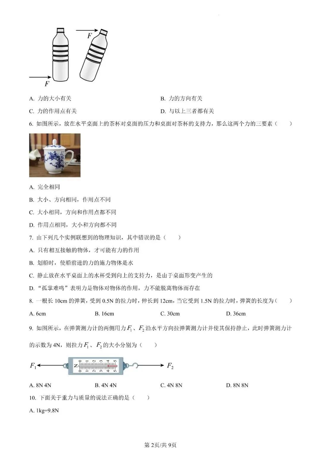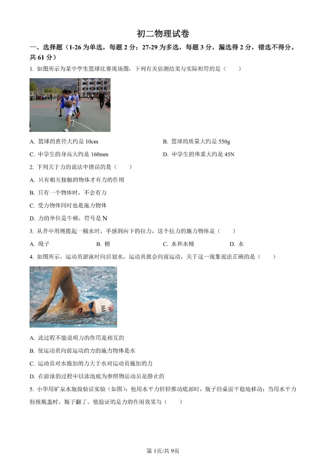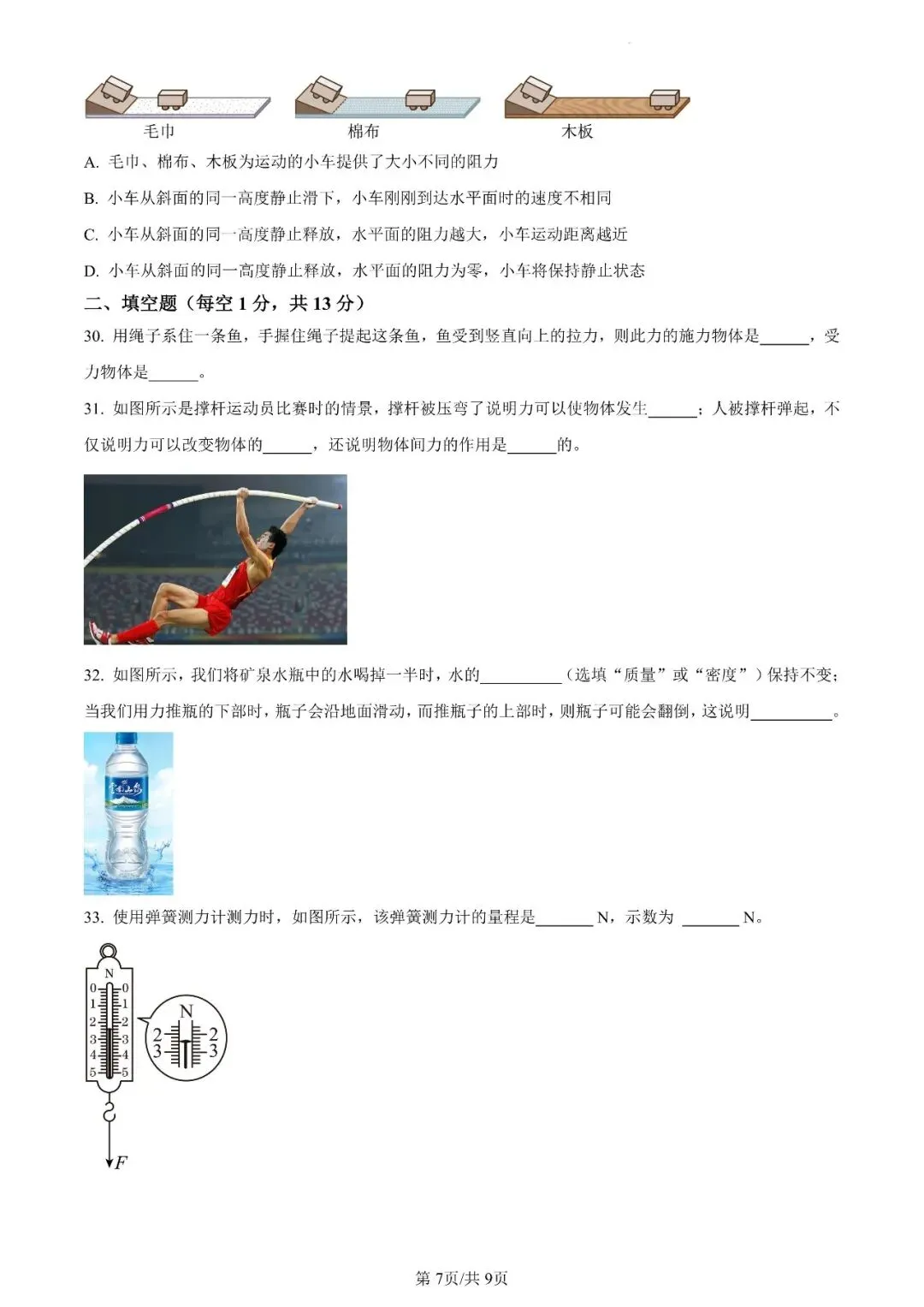 邯郸市汉光中学八下第一次月考物理试卷