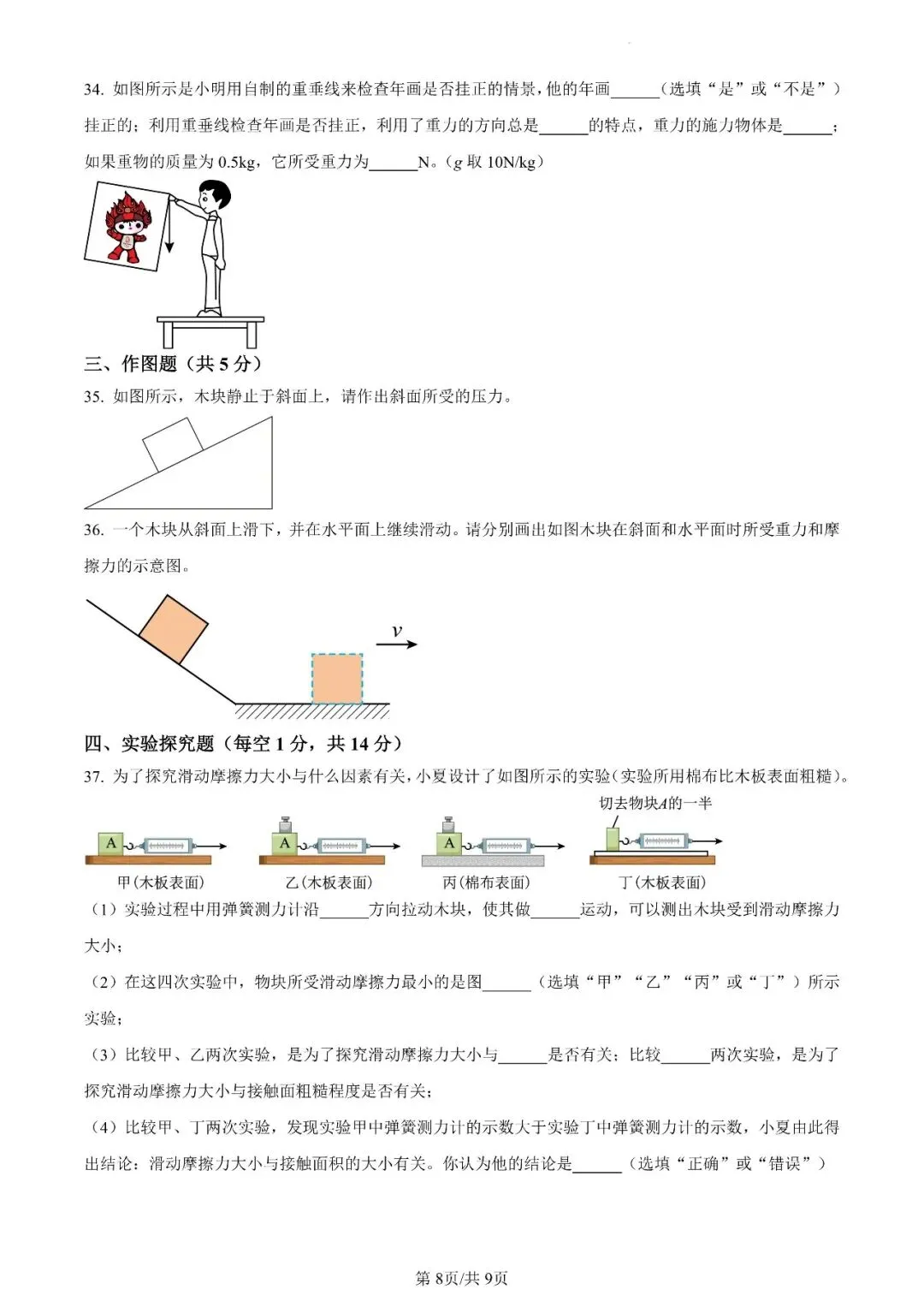 邯郸市汉光中学八下第一次月考【物理】卷-可打印(有答案)