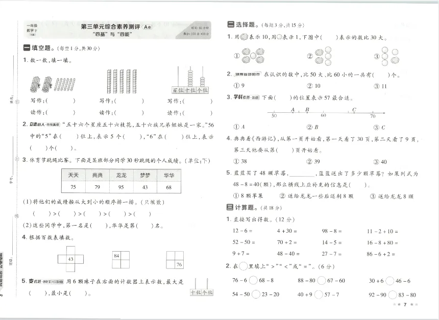 2026春【好卷】人教版数学 一二三四五六年级下册