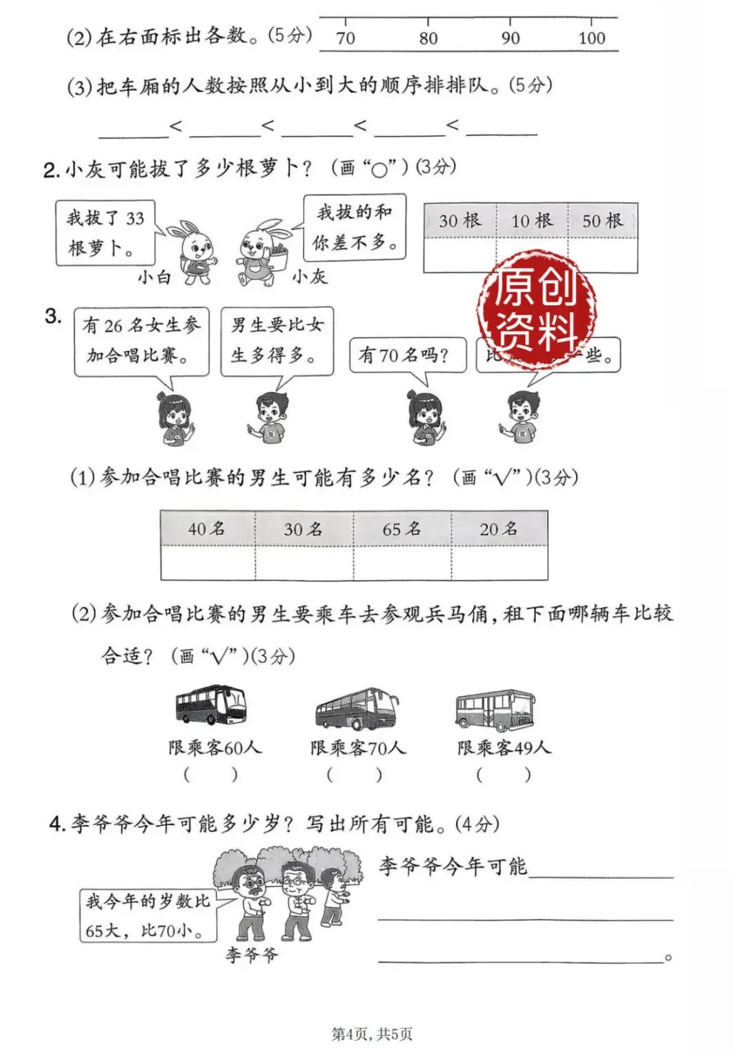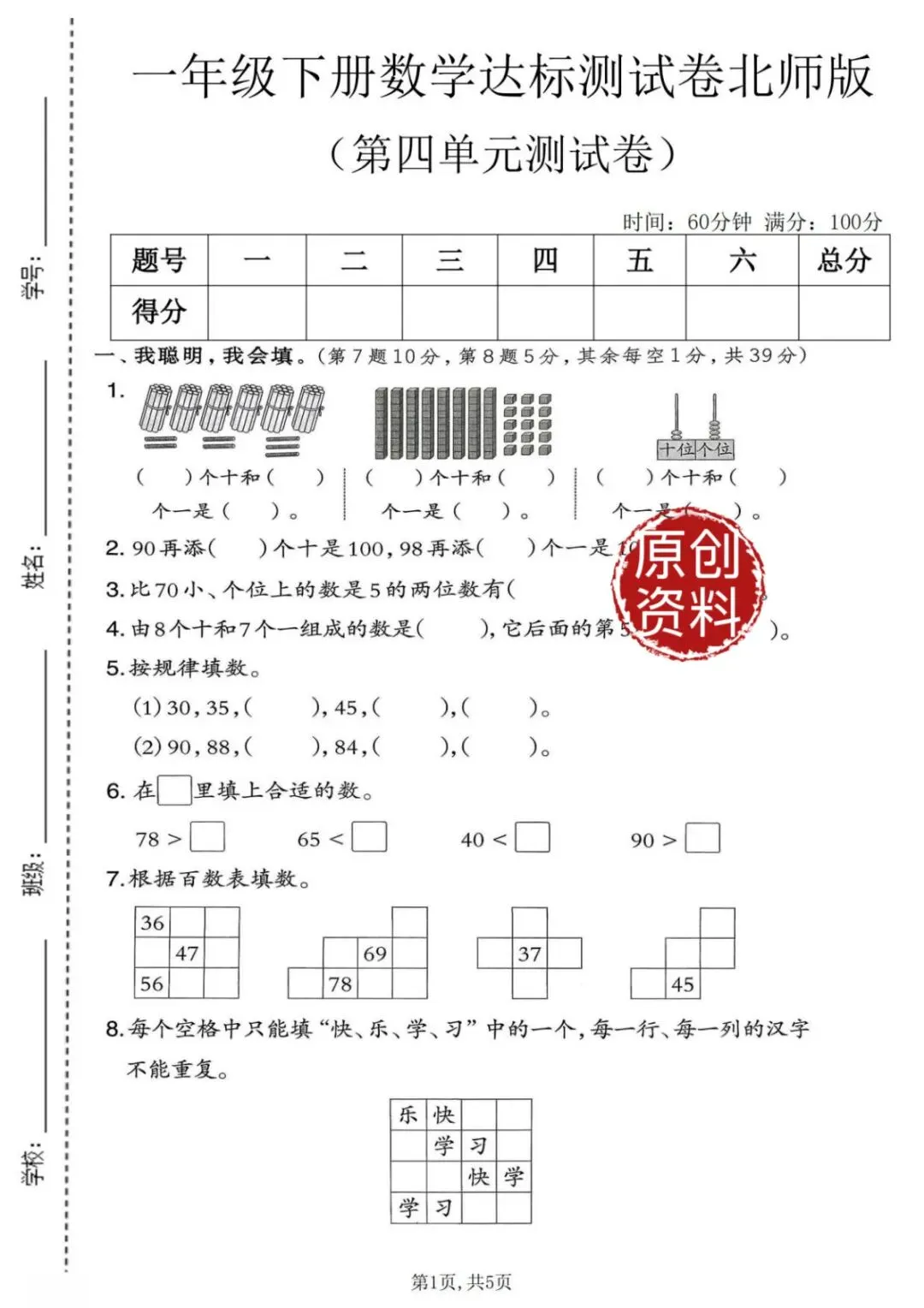 一下数学新整理的第四单元真题测试卷,题型新颖贴合教材,家长打印出来给孩子学习,及时查缺补漏✅