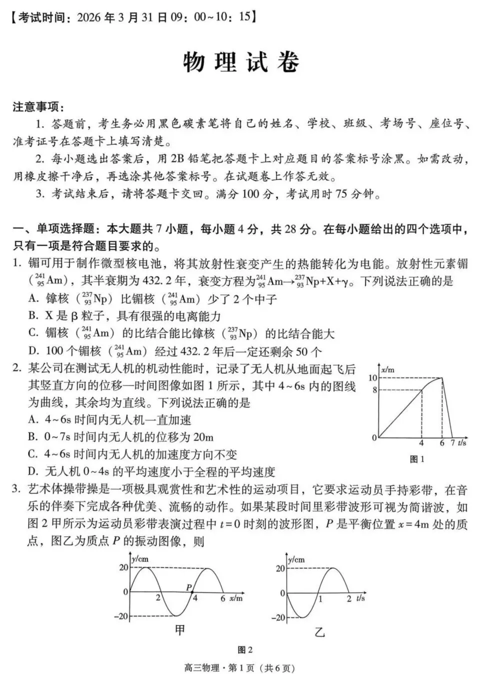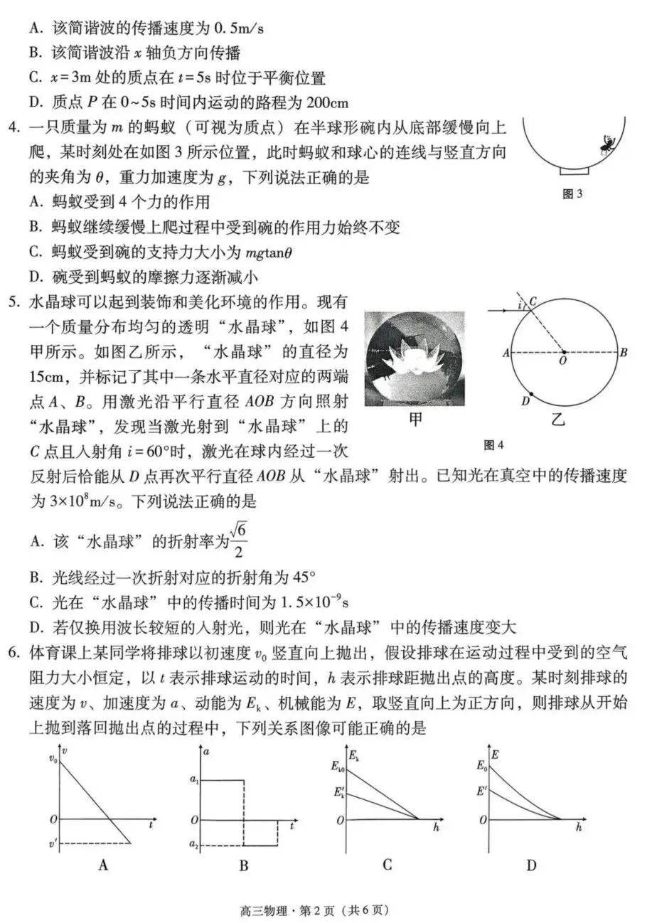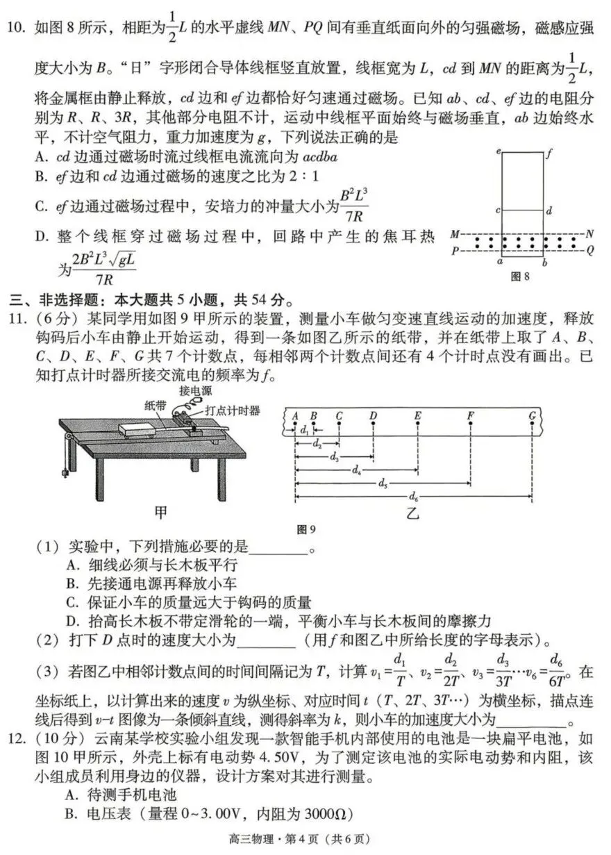 2026届云南师大附中高三下学期第二次统测物理试卷及答案