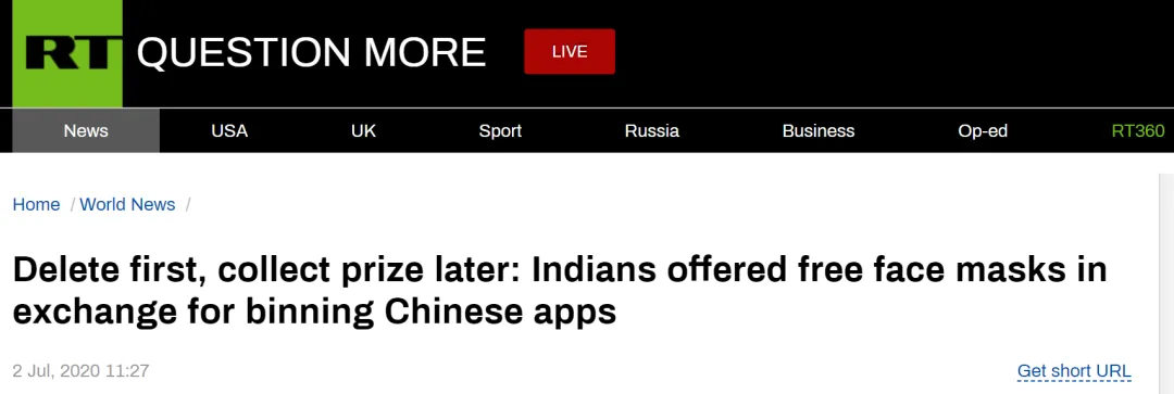 RT:“先删除,再拿奖励:印度人提供免费的口罩,以换取删除被禁的中国App”