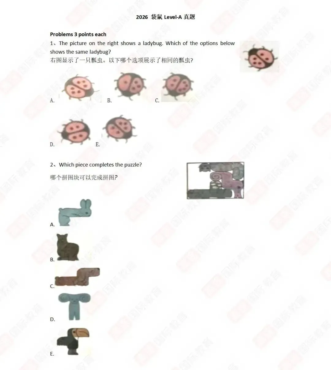 2026年袋鼠数学竞赛真题领取(PDF版可打印)