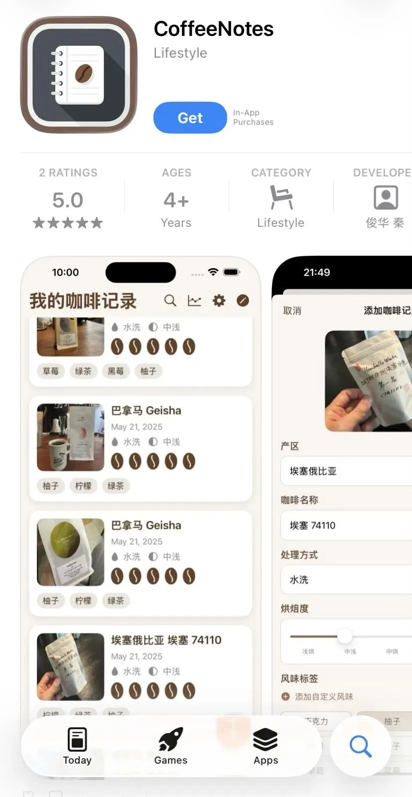 好巧不巧的是!我在软件的界面上发现这位独立开发者的另一款APP作品,也是一个用来记录每天喝了什么咖啡的软件!我震惊地以为可能是遇到了那篇帖子的博主。