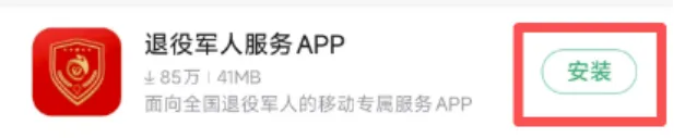 1.打开手机官方应用商店,搜索“退役军人服务APP”进行安装。