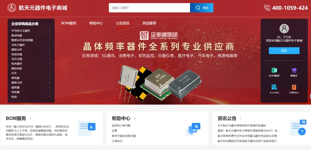 重磅!航天元器件电子商城(正式版)上线,企事通集团持续护航