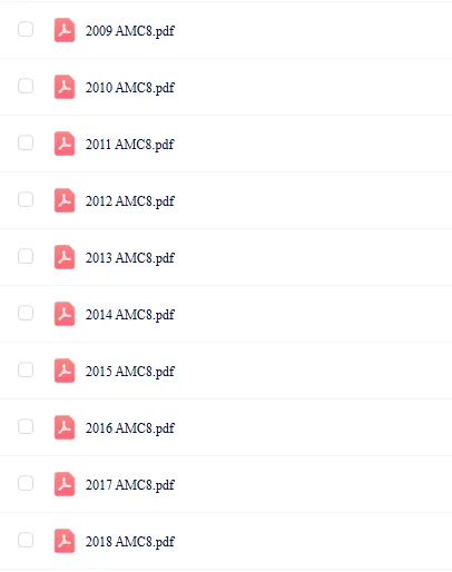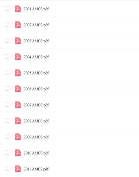 2026年AMC8真题及解析、2025年AMC8真题及解析、2024年AMC8真题及解析、2023年AMC8真题及解析、2022年AMC8真题及解析、2020年AMC8真题及解析、2019年AMC8真题及解析、2018年AMC8真题及解析、2017年AMC8真题及解析、2016年AMC8真题及解析、2015年AMC8真题及解析、2014年AMC8真题及解析、2013年AMC8真题及解析、2012年AMC8真题及解析、2011年AMC8真题及解析、2010年AMC8真题及解析、2009年AMC8真题及解析、2008年AMC8真题及解析、2007年AMC8真题及解析、2006年AMC8真题及解析、2005年AMC8真题及解析、2004年AMC8真题及解析、2003年AMC8真题及解析、2002年AMC8真题及解析、2001年AMC8真题及解析、2000年AMC8真题及解析